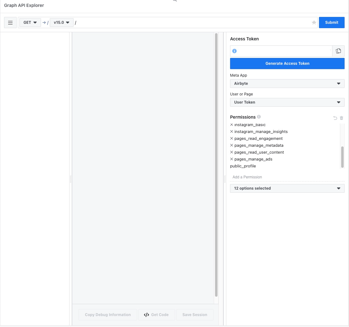 - Connect a User Page using the Graph API Explorer. Choose your app in the